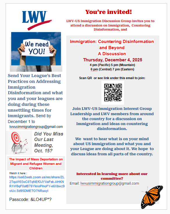[LWVNM Action] 12/4 Thursday LWVUS Immigration-Disinformation Zoom!!!