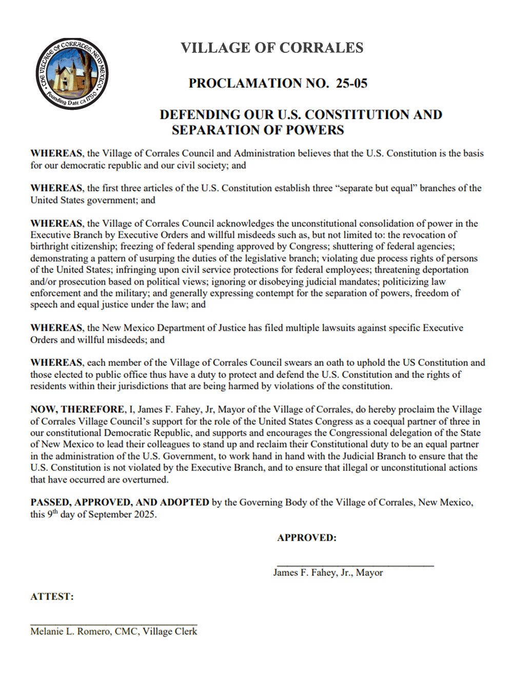 Last night the tow of Corrales, New Mexico debated and passed their resolution. A preview of the resolution can be found in this article from a local new site. In considering the resolution last night Councilor Bill Woldman said: