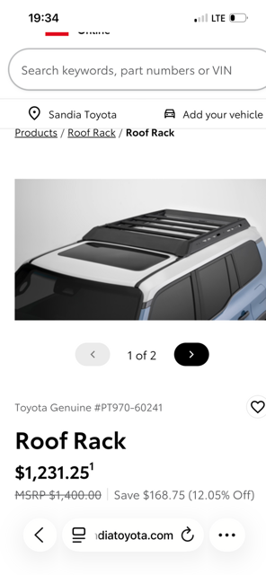 I know this mail list is for cyclist but perhaps one of you may own a new LandCruiser that needs a nice sporty roof rack to support your active lifestyle. This rack is a brand new Toyota OEM product. I am assisting a friend in selling. She did not want it on her new vehicle. Great price at $600. Includes mounting hardware.