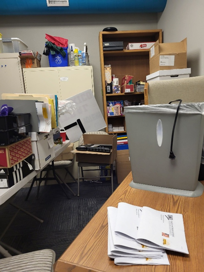 Needless to say, the (usually very tidy) office rooms are in disarray, with