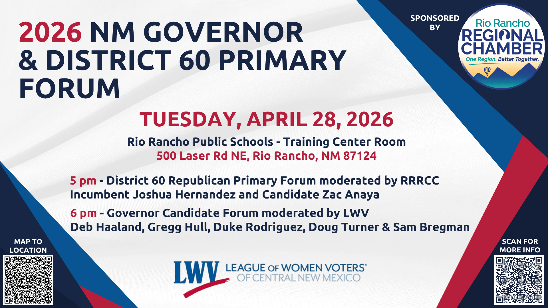 To submit questions please email lwvcnmforum.questions at gmail.com Please