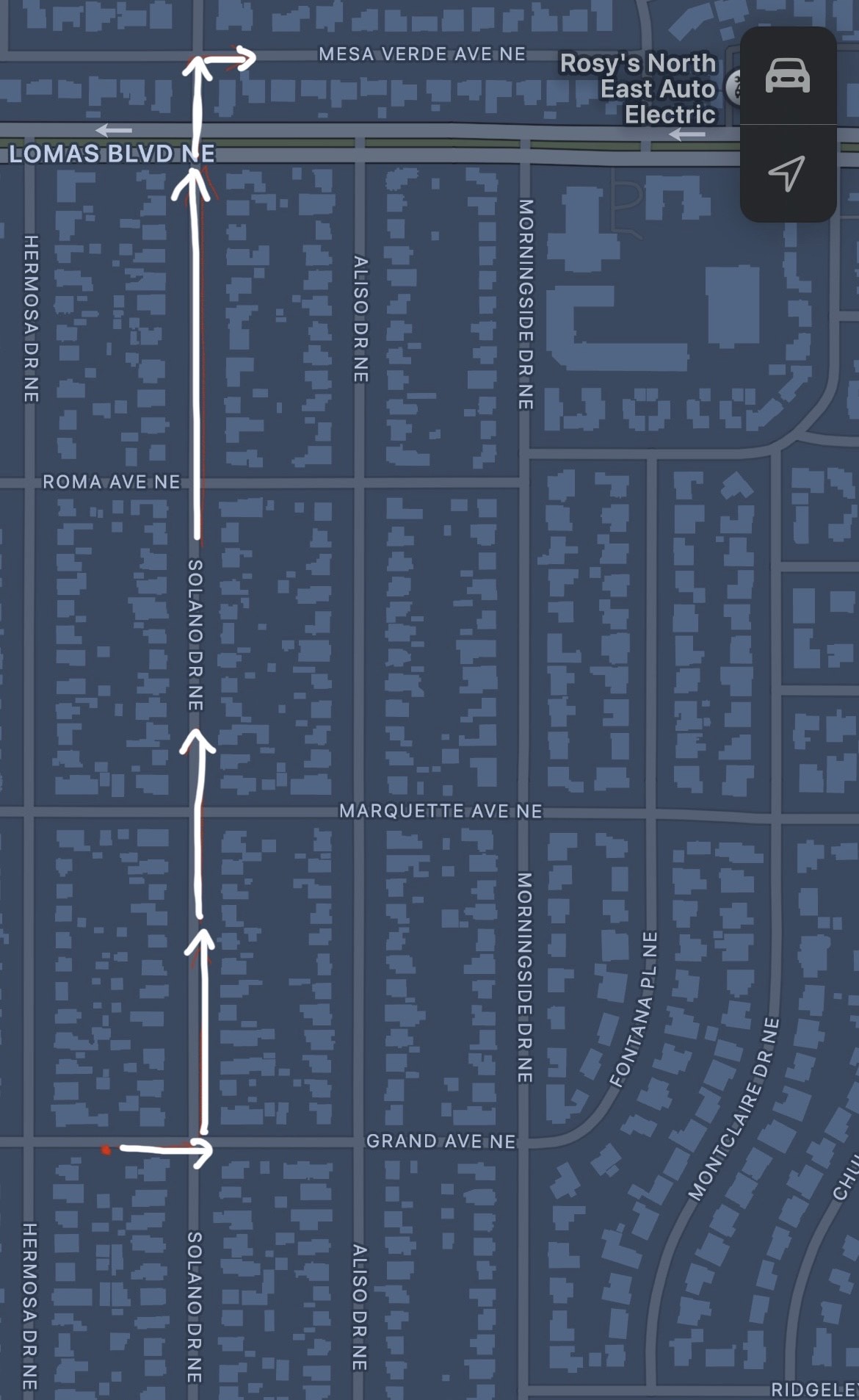 turned left on Solano, running north to Lomas. We tried to follow to take a