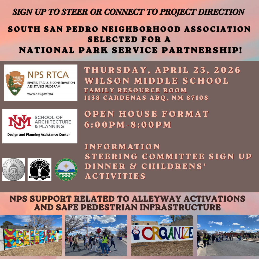 South San Pedro Neighborhood Association (SSPNA) was awarded National Parks Service (NPS) Technical Assistance, aka Urban Planners from NPS are coming to share their brilliance to help plan related to the alleyways!