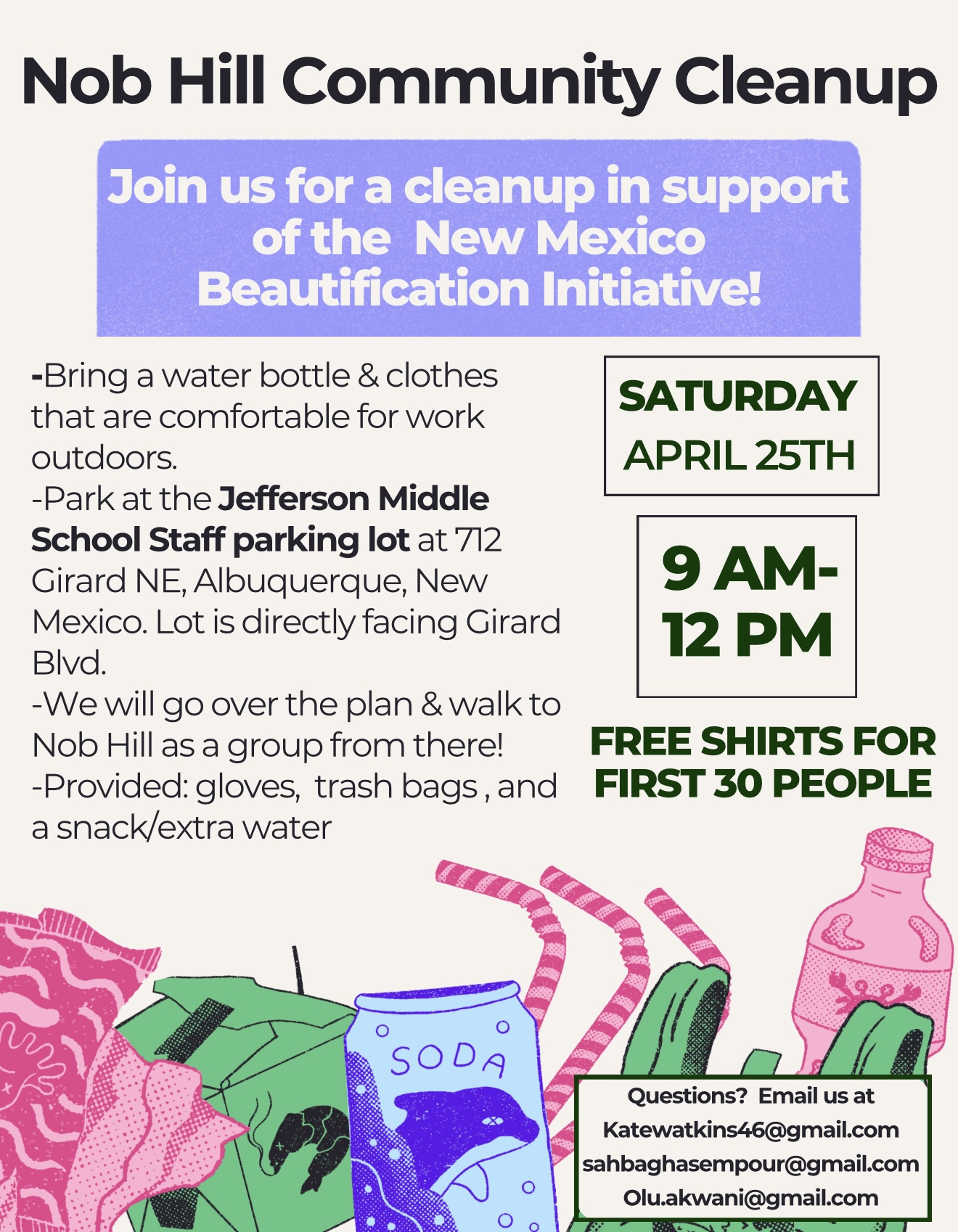 email) who are organizing a clean up of the Nob Hill neighborhood from