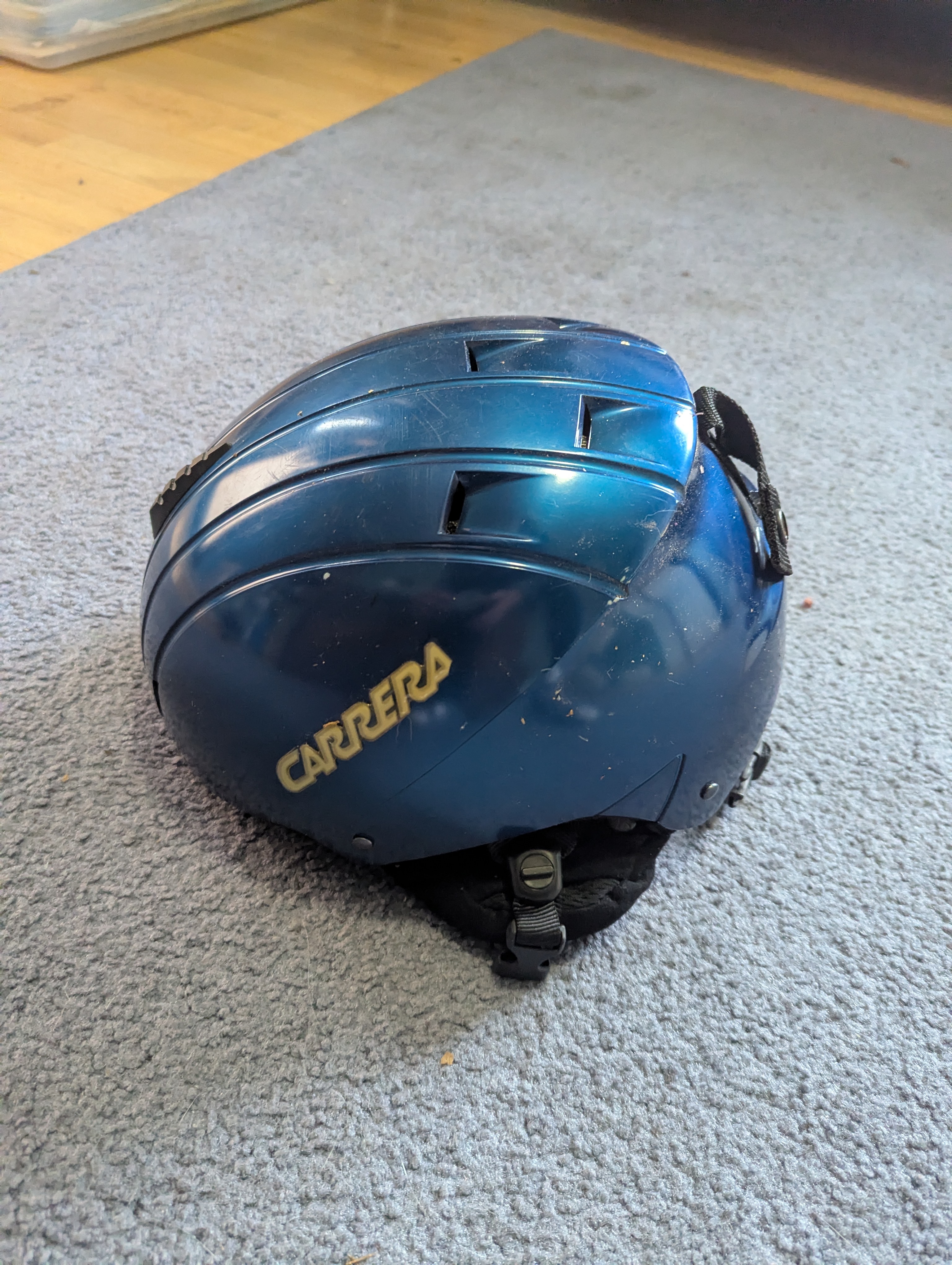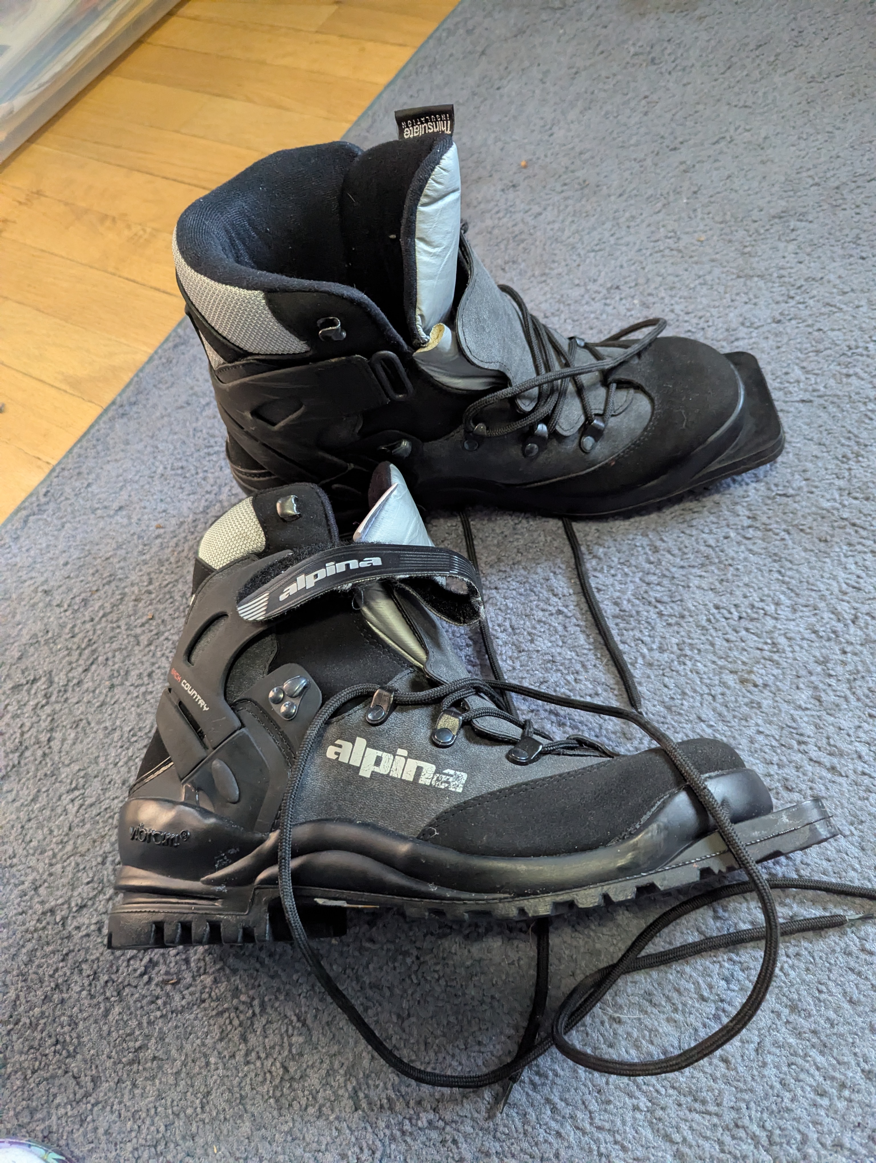 I have 3 pin boots, size 42. Nice helmet for the serious skier, very