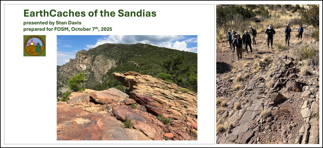 Please plan to join us on October 7 for our last membership meeting of 2025. After election of new officers and board members for the coming year, FOSM member Stan Davis will educate us about interesting EarthCaches in our Sandia Mountains.