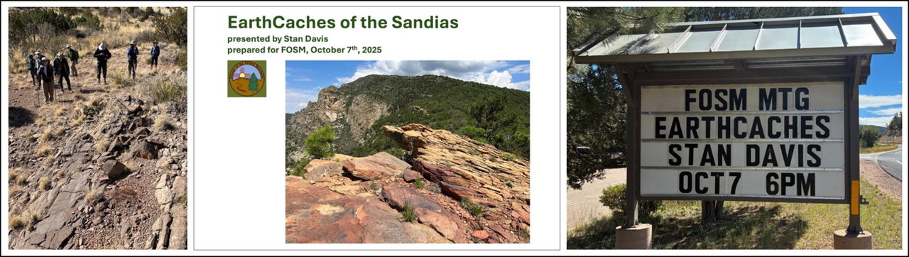 Please join us on October 7 for our last membership meeting of 2025. After election of new officers and board members for the coming year, FOSM member Stan Davis will educate us about interesting EarthCaches in our Sandia Mountains.